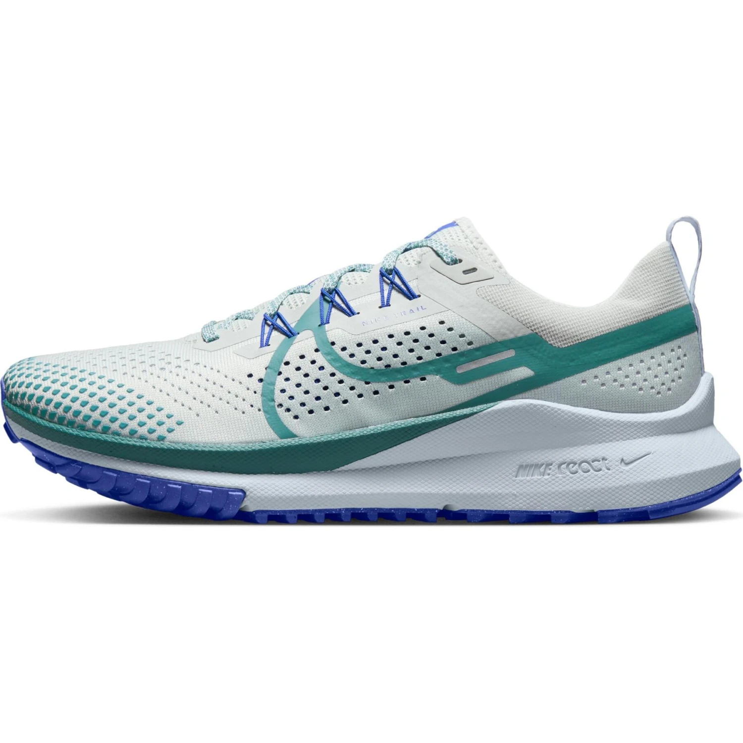 Le running est votre rituel quotidien, vous menant du bitume aux sentiers rocailleux au gré de vos aventures et de vos objectifs. La Nike React Pegasus Trail 4 vous accompagne dans votre périple en vous offrant une sensation de maintien et de dynamisme. L’adhérence sous le pied résiste aux terrains rocailleux, tout en offrant une foulée parfaitement fluide sur le bitume. Le maintien au milieu du pied s’ajuste grâce aux lacets, pour vous permettre de trouver la tenue et le confort qui vous conviennent. Votre chaussure ailée ultra-performante est prête à découvrir de nouveaux horizons. Parée au décollage. Le moment est venu de prendre votre envol.